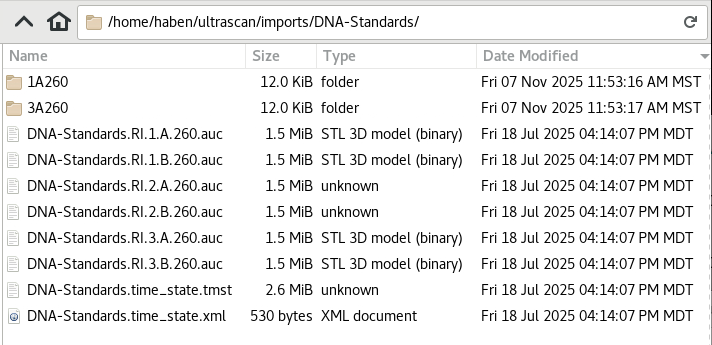 Legacy Beckman and UltraScan III format are organized as in the table below, so when importing into Ultrascan III, Beckman format files have to be compressed into .tar.gz files and converted into UltraScan III format using Beckman to OpenAUC Data Converted.
