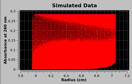 The simulation creates a data set with the same ranges as the edit experimental data set. The actual values for scan readings vectors are synthetically produced, as illustrated by the plot below. |