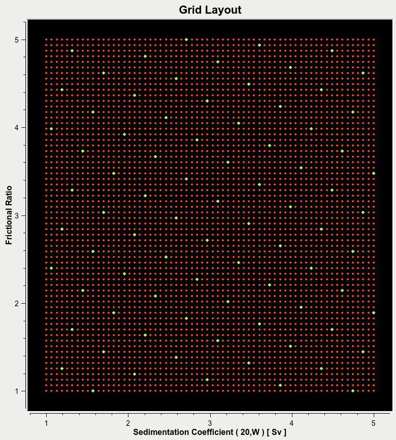 Custom grids can be defined by varying two if the attributes listed and fixing one (sedimentation coefficient, frictional ratio, molecular weight, vbar and diffusion coefficient).