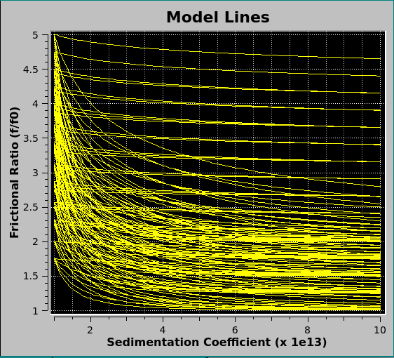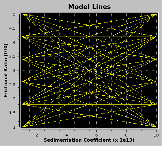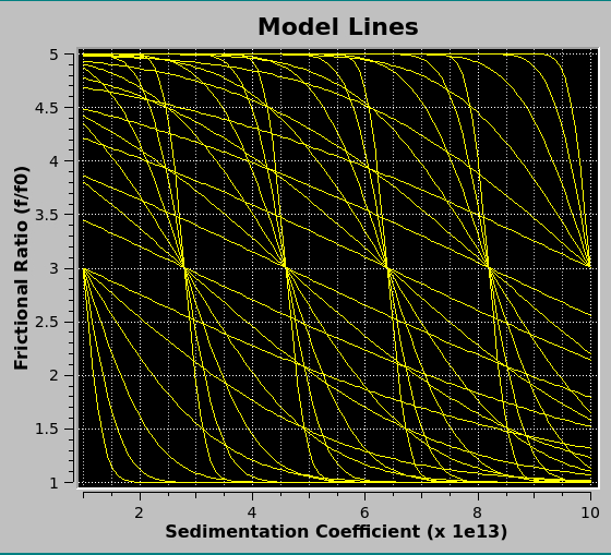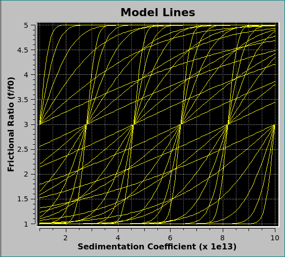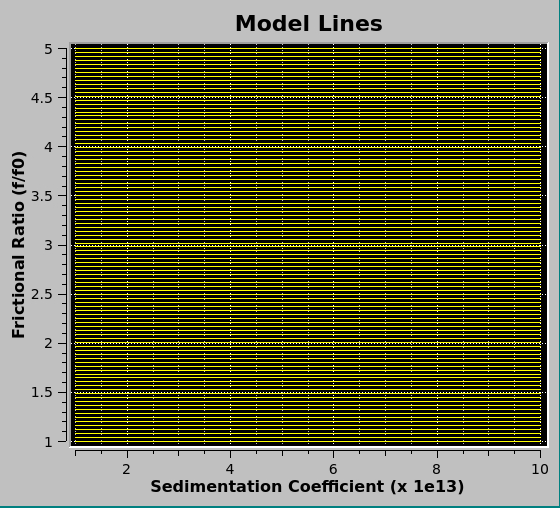 After an initial pass in which all the specified model curves are evaluated, the results are sorted by fitness (least RMSD). The best model then becomes the starting point for a second pass that utilizes Levenberg-Marquardt to refine the model. The result of that second pass is inserted as the final best model. For a straight line type, a specified variation count is given. Lines cover the full s range, with end points along the f/f0 range varying the specified number of times. Each implied starting point connects with each of the possible end points. So the square of the implied number of f/f0 end points is the number of models analyzed. If the type is Horizontal Line, the f/f0 value is the same for start and end points, so the number of models is the variations count itself (not its square).